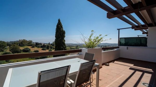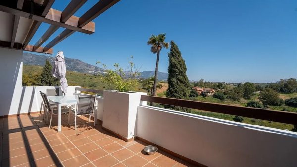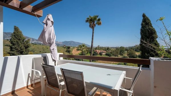 La terraza de aproximadamente 19 m² es uno de los principales atractivos de este apartamento en Mijas Golf Mijas. Permite disfrutar del clima mediterráneo durante todo el año, creando un espacio ideal para relajarse, comer al aire libre o simplemente aprovechar las vistas despejadas.